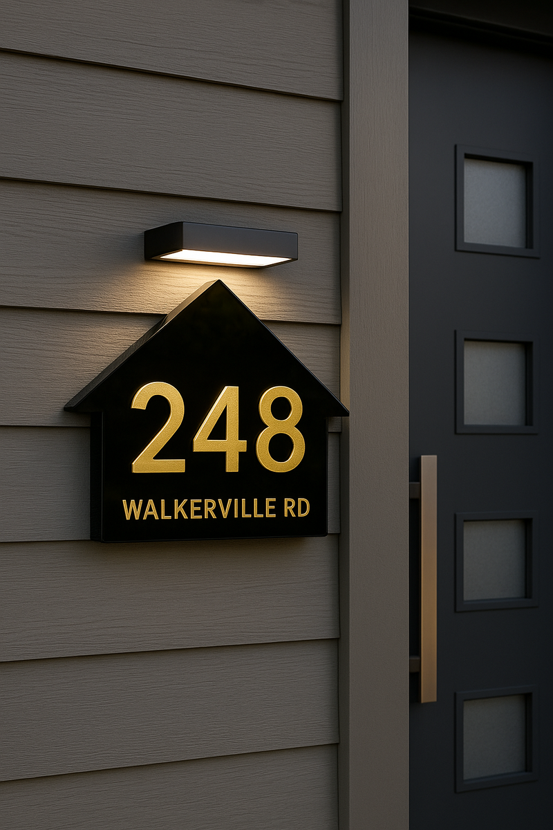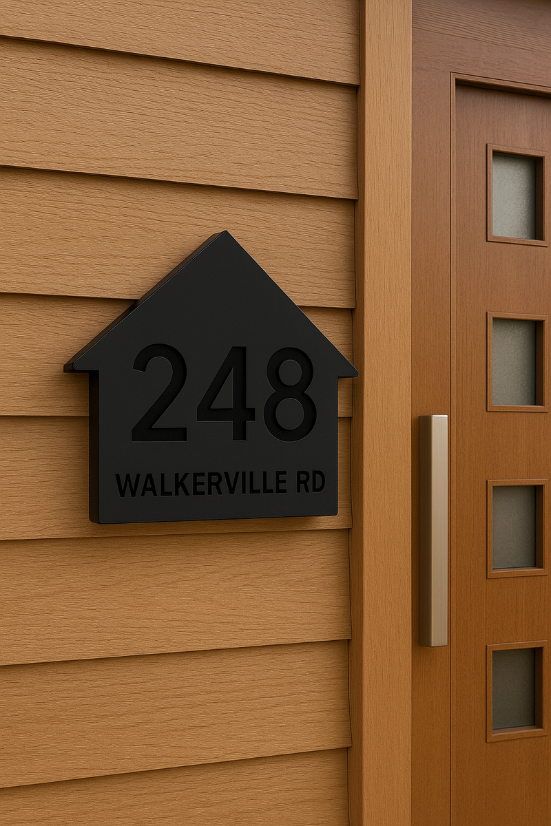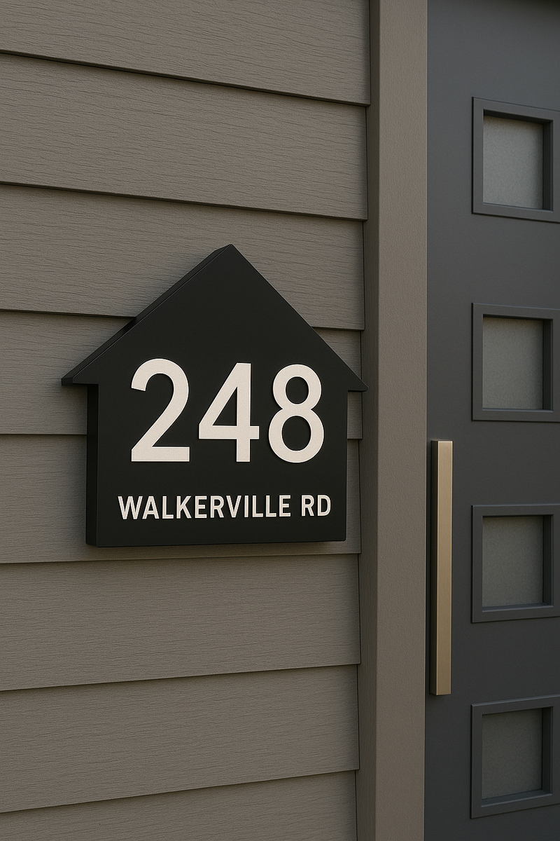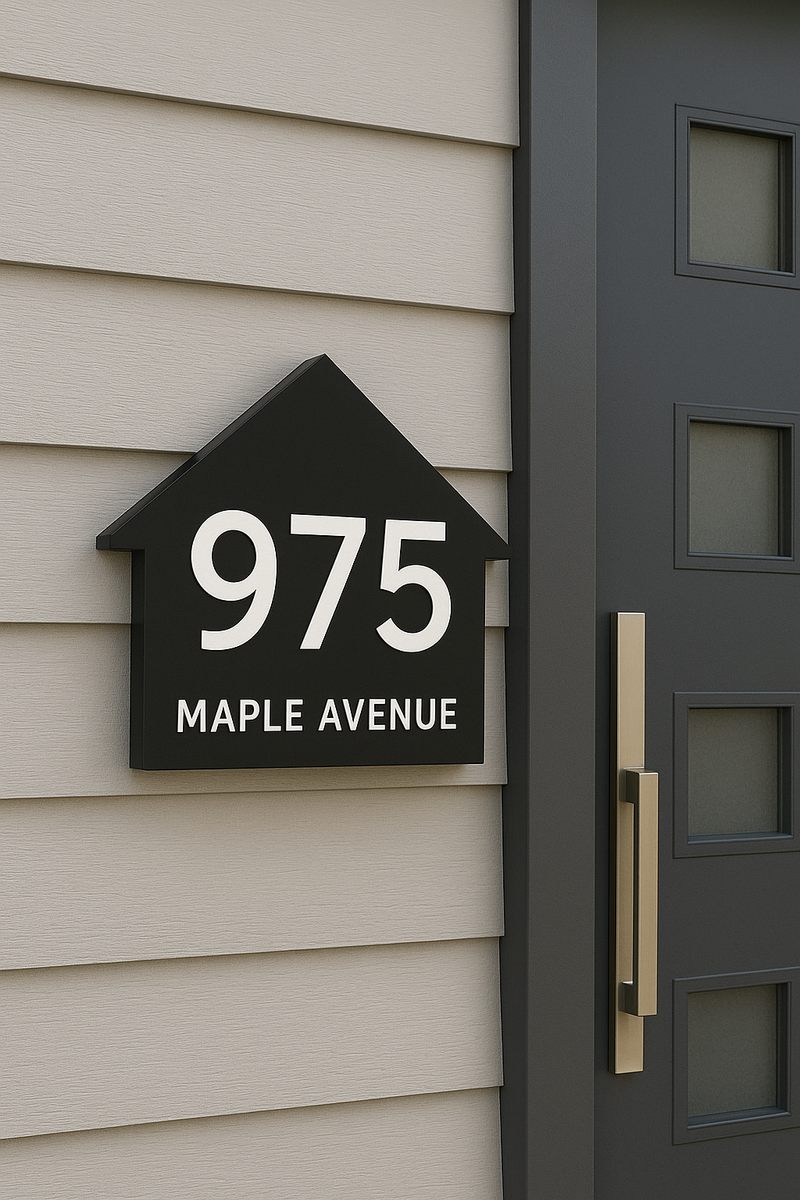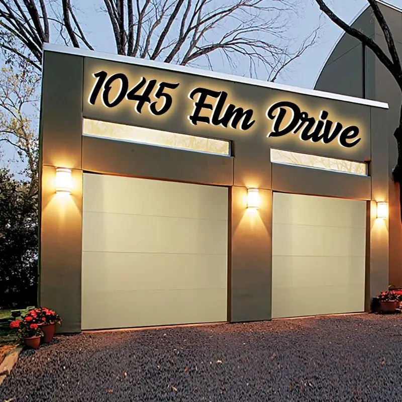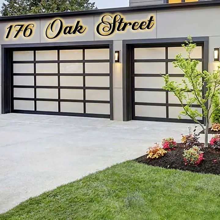Premium custom address sign crafted with high-precision cutting and weather-resistant materials—perfect for garage doors and home entrances.